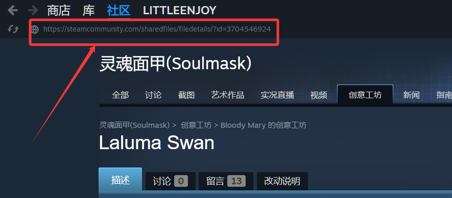 开始教程:点击左侧的版本配置打开它下滑找到模组ID选项填写你需要的MODID即可如何找到MODID:打开steam创意工坊找到你需要模组,点击进去复制顶部的URL地址=号后面的就是ID直接填进服务器的变量即可用逗号隔开!!