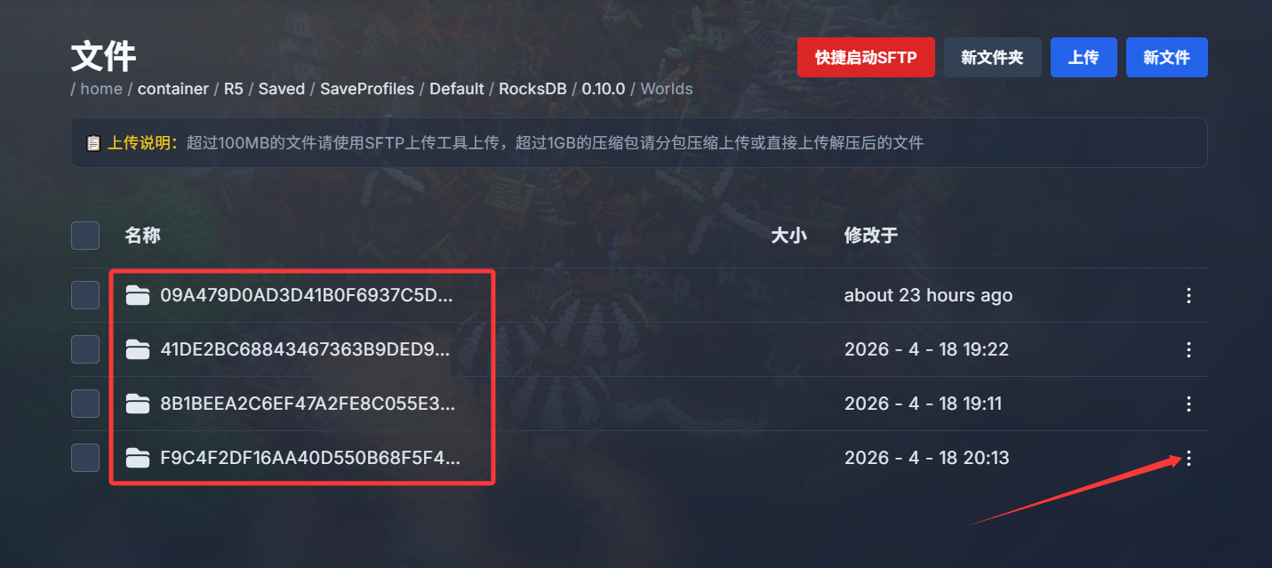 打开文件路径R5/Saved/SaveProfiles/Default/RocksDB/0.10.0/Worlds